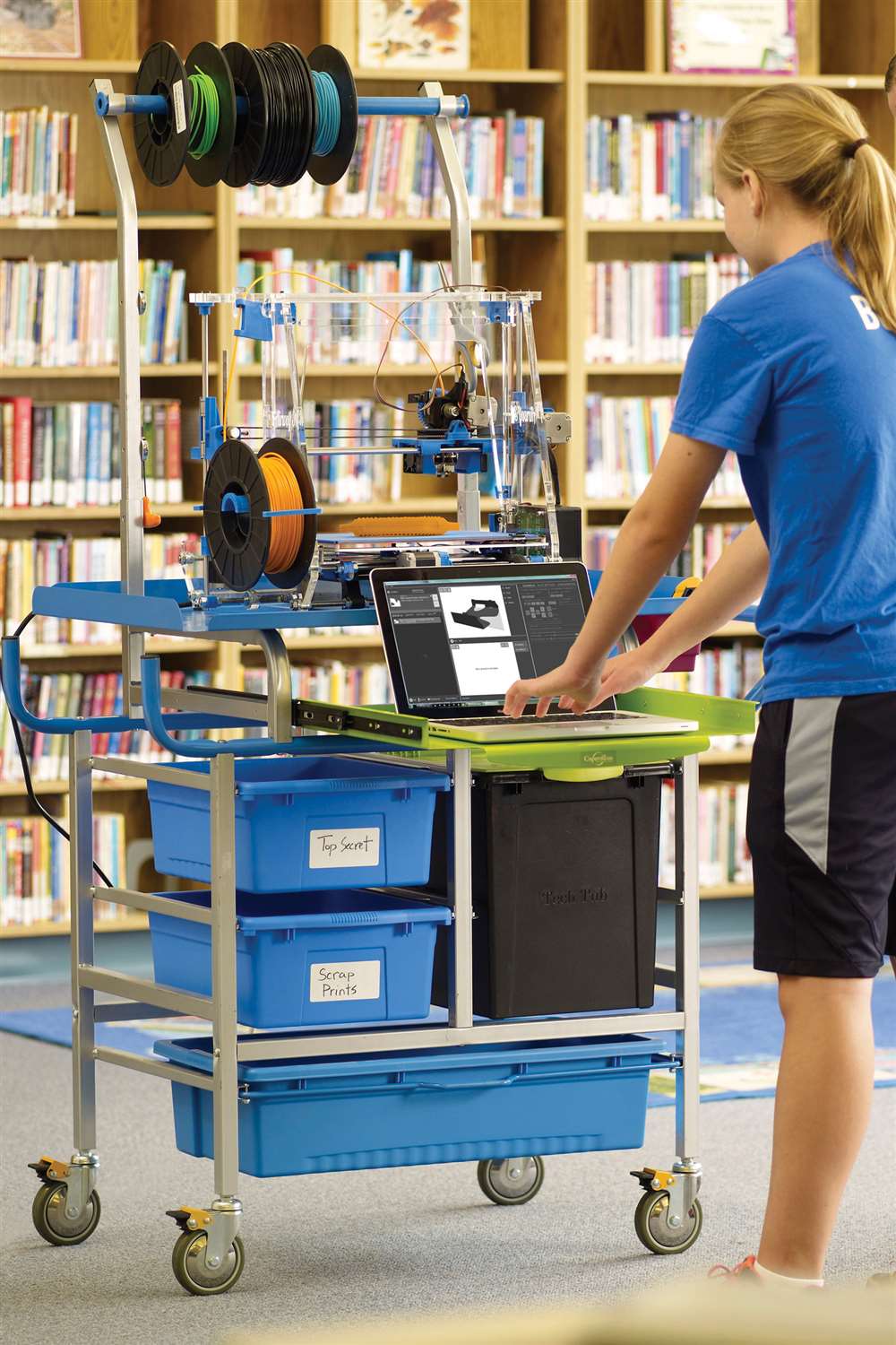 Prototyping is a critical step in bringing ideas to life and often involves a 3D printer. STEM/STEAM labs and libraries are regularly reconfigured to suit a range of activities and grade levels. This cart's sturdy frame and casters protect your investment and makes it easy to move to the point of instruction while keeping everything you need close at hand.