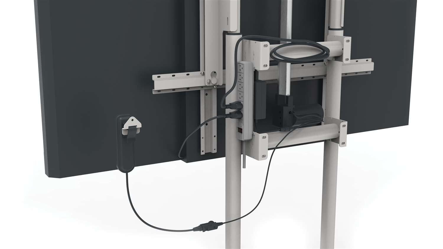 This height-adjustable wall-mounted flat panel is important for the classroom because it not only saves valuable classroom floor space but can also accommodate students with different physical abilities and needs. Its easy-to-use electric lift allows the flat panel height to be adjusted with a 17” range to accommodate students from different grade levels as classrooms change. There is a built-in clearance for mounting over marker ledges on whiteboards. This flexibility is also ideal in media and library spaces where many students participate in activities.